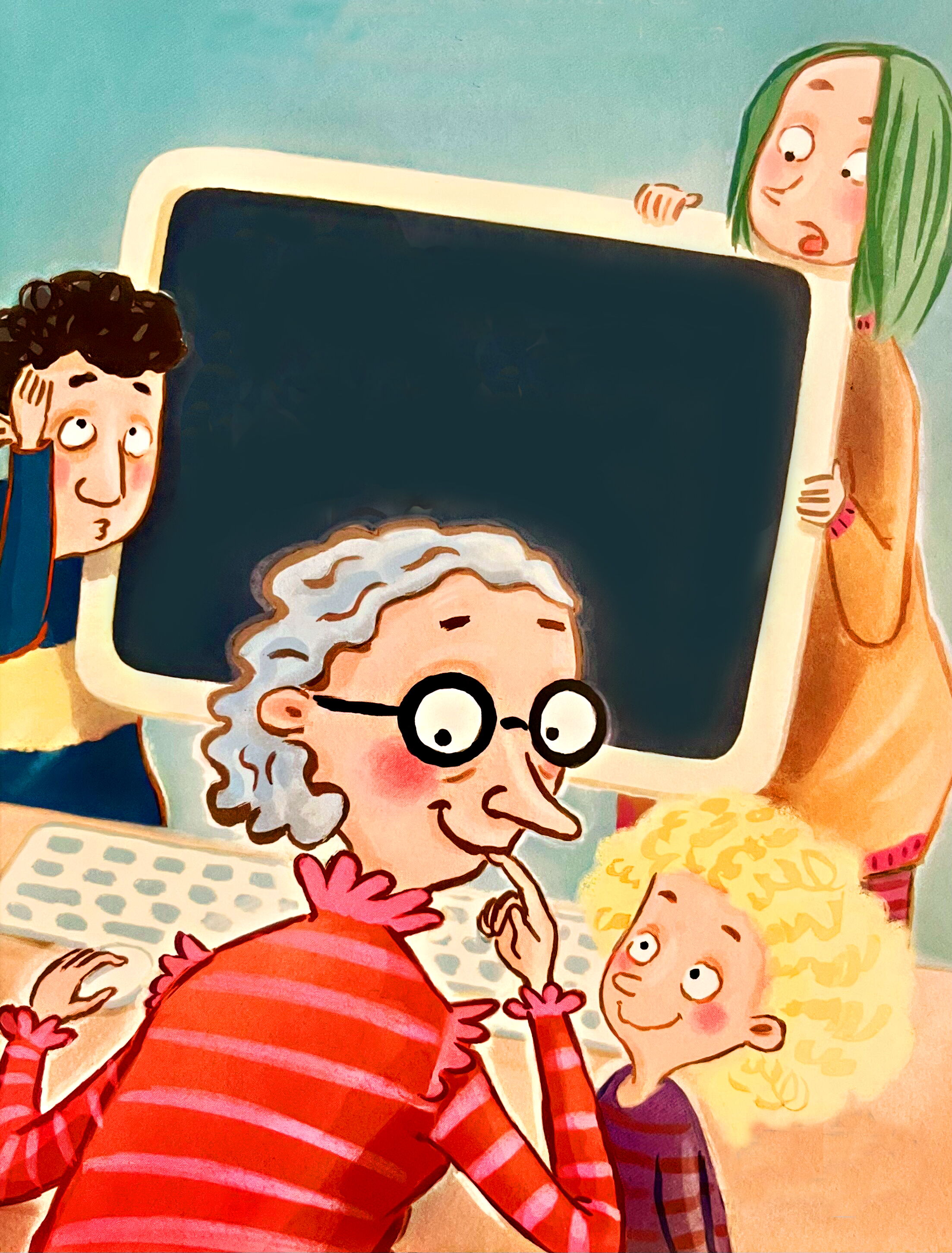 Da hat Tiffany nur einmal auf ihre Oma aufpassen sollen. Oder war es umgekehrt? Und ausgerechnet an diesem Tag macht die Oma mit einem "Klick-Klick" das Internet kaputt. Das ganze Internet! WeltWeitWeg! Also kaputt! „Aber doch nur aus Versehen!“ sagt die Oma. Doch das (analoge) Radio bestätigt: „Internet-Crash auf der ganzen Welt!“ Na toll! Ohne Internet geht gar nichts mehr: Max kann nicht auf seinem Handy zocken, Luisa keine Musik mehr hören, der Opa keine Tierfilme streamen. Und Mama und Papa kommen früher nach Hause, denn ohne Internet nicht arbeiten. Was fängt man nur mit so einem Tag an? Ohne Internet ...